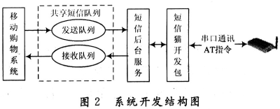 基于開發(fā)周期及成本的考慮,本系統(tǒng)采用開發(fā)包形式。短信貓開發(fā)包是針對(duì)目前常用短信模塊開發(fā)的短信應(yīng)用API集合,具有成熟穩(wěn)定、支持多種語(yǔ)言、高可靠性等特點(diǎn)特點(diǎn)。系統(tǒng)開發(fā)結(jié)構(gòu)圖如圖2所示。