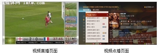 2008年11月份,KT的IPTV服務(wù)開始落地,不僅包括實時直播頻道,并且全力打造IPTV超高速互聯(lián)網(wǎng)品牌QOOKTV,截至2009年9月份QOOKTV用戶已經(jīng)超過八十萬戶,目前為韓國95%的人群提供服務(wù)。