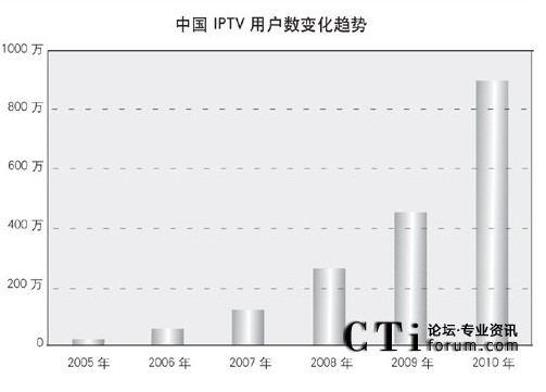 “截至2009年12月底,我國(guó)IPTV用戶數(shù)達(dá)到近470萬(wàn)。其中,中國(guó)電信達(dá)到362萬(wàn),中國(guó)聯(lián)通在50萬(wàn)左右,杭州華數(shù)共發(fā)展用戶56萬(wàn)!。他預(yù)計(jì):“2010年中國(guó)IPTV用戶數(shù)有望達(dá)到900萬(wàn),中國(guó)電信依舊是發(fā)展主力!盜n-Stat(中國(guó))分析師張強(qiáng)也認(rèn)為我國(guó)目前已有400多萬(wàn)IPTV用戶,因?yàn)樵凇?009年年初,就已經(jīng)達(dá)到300萬(wàn)了”。