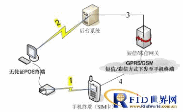 第3步:后臺系統(tǒng)將用戶刷卡信息處理生成憑證信息之后將此憑證信息發(fā)送給短信/彩信網(wǎng)關(guān)(此憑證信息形式可以為經(jīng)過加密了的短信或彩信,也可以為二維碼等可以驗(yàn)證的形式)。
