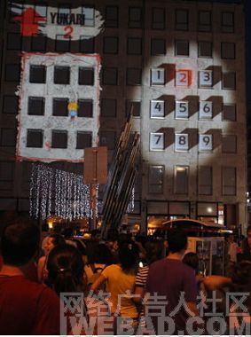 代理公司聯(lián)合媒介公司(傳立)在伊斯坦布爾的市中心一棟大樓上做了一個好玩的吃豆豆投影游戲。