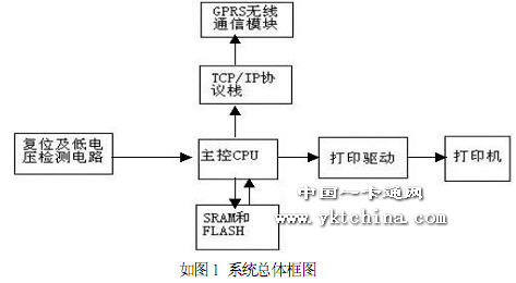 本系統(tǒng)軟件部分主要包括4 個(gè)部分,l、GPRS 撥號(hào)部分2、TCP/IP 協(xié)議棧部分3、打印驅(qū)動(dòng)部分4、存儲(chǔ)部分。