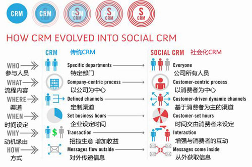 社會(huì)化CRM區(qū)別于傳統(tǒng)CRM的不同之處: