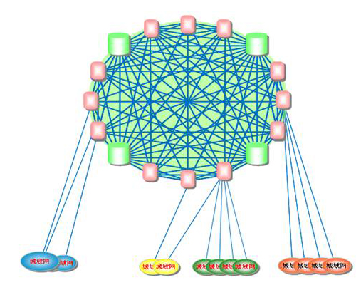 網(wǎng)絡扁平化概念就適時提出來了。現(xiàn)在,網(wǎng)絡扁平化已經(jīng)是運營商網(wǎng)絡建設的主要指導思想了。特別是中國聯(lián)通,由于歷史原因造成的骨干網(wǎng)節(jié)點并不夠多導致其南北方網(wǎng)絡品質存在一定差異。而扁平化后能很好的解決此問題。下圖為網(wǎng)絡扁平化示意圖。