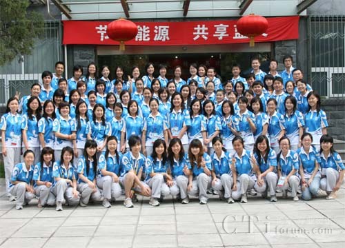 今天是我們來到北京的第一天, 經過了十三個小時的火車顛簸,上午9點50分,由上海駛往北京的火車進站,漸停漸穩(wěn),載著招行卡中心客戶服務部的志愿者到達首都。透過車窗,映入眼簾的是“歡迎奧運志愿者”的橫幅和可愛的福娃“妮妮”,所有志愿者頓時興奮不已,禁不住歡呼著:“北京我來了,奧運我來了!”