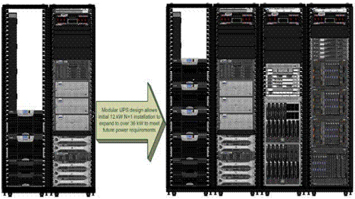 模塊化UPS設(shè)計(jì)允許最初的12kW N+1架構(gòu)設(shè)備擴(kuò)展至36kW以上,以滿足未來的電源要求。