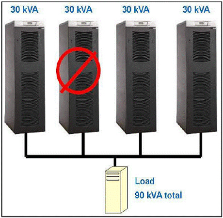 圖:即使UPS因技術(shù)問題或維護(hù)要求而關(guān)閉,N+1供電體系結(jié)構(gòu)仍能繼續(xù)工作