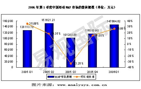 圖:2006年第一季度中國移動 WAP 市場的整體規(guī)模(萬元)