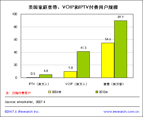 iResearch:美國家庭寬帶、VOIP和IPTV付費用戶規(guī)模