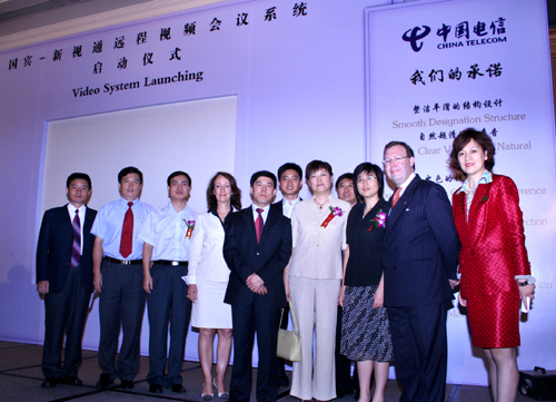 在新聞發(fā)布會(huì)儀式上,來自中國電信和北京國賓酒店信息中心的技術(shù)人員為來賓們現(xiàn)場演示了這套視頻會(huì)議系統(tǒng),國賓酒店安裝的這套全球先進(jìn)的“新視通”視頻會(huì)議系統(tǒng),是一款高檔分體式的會(huì)議室型終端服務(wù)體系,它可以提供非常靈活可靠及強(qiáng)大的功能,完全可以滿足各種會(huì)議室、教室或中小規(guī)模的會(huì)議應(yīng)用環(huán)境。采用專門集成的音響系統(tǒng),利用“新視通”的專利技術(shù),提升了音頻質(zhì)量。通過雙揚(yáng)聲器和雙麥克風(fēng),可以清晰的聽到每個(gè)發(fā)言人的聲音,輕松辨別多個(gè)發(fā)言人的同時(shí)談話,感受純正、豐滿的音頻質(zhì)量。與其他運(yùn)營商推出的視訊業(yè)務(wù)相比,