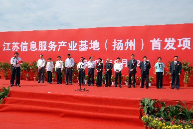 日前,江蘇信息服務(wù)產(chǎn)業(yè)基地(揚(yáng)州)首發(fā)項(xiàng)目開工典禮在廣陵新城隆重舉行,這標(biāo)志著產(chǎn)業(yè)基地建設(shè)邁入了實(shí)質(zhì)性階段。揚(yáng)州市人民政府市長(zhǎng)王燕文和天津泰達(dá)公司董事長(zhǎng)劉惠文為奠基石揭幕,市委常委、常務(wù)副市長(zhǎng)王榮平致賀詞,江蘇省信息產(chǎn)業(yè)廳副廳長(zhǎng)龔懷進(jìn)出席了開工典禮。