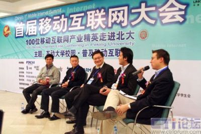 2007年12月19日,首屆移動(dòng)互聯(lián)網(wǎng)大會(huì)在中國(guó)的北京大學(xué)隆重舉辦。由手機(jī)圈傳媒主辦的本次活動(dòng)以“互動(dòng)大學(xué)校園,普及移動(dòng)互聯(lián)網(wǎng)”為主題,以“100位精英走進(jìn)北大”為活動(dòng)主線。包括中國(guó)移動(dòng)研究院、英特爾、GOOGLE、NOKIA、MOTO、聯(lián)想研究院、ARM、方正阿帕比、空中網(wǎng)、3G門(mén)戶、手機(jī)騰訊網(wǎng)、手機(jī)搜狐網(wǎng)、手機(jī)新浪網(wǎng)、大頭網(wǎng)、萬(wàn)蝶網(wǎng)、美科互動(dòng)、dotMobi公司等100多家移動(dòng)互聯(lián)網(wǎng)領(lǐng)先企業(yè)均參與到本次論壇。