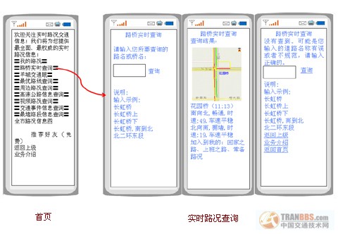 手機(jī)上通過(guò)短信查詢(xún)動(dòng)態(tài)交通信息,提供動(dòng)態(tài)路徑規(guī)劃,定制道路路況播報(bào)。