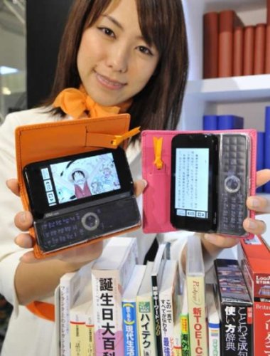 日本第二大電信服務(wù)商KDDI與東芝合作推出以“Biblio”命名的手機(jī),以電子書(shū)瀏覽器作為最大賣(mài)點(diǎn)。該機(jī)內(nèi)建7GB內(nèi)存,3.5吋觸摸式液晶顯示屏,外型及包裝設(shè)計(jì)都和Amazon Kindle相似,配備WIFI、510萬(wàn)像素鏡頭及電子辭典功能。