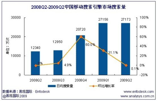 2009年第2季度中國移動搜索引擎市場搜索量達2.72億次