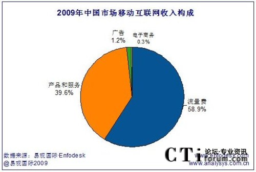 移動互聯(lián)網(wǎng)收入規(guī)模中,流量費(fèi)收入達(dá)228億元人民幣,占總體市場收入的58.9%,因此可以看出,移動互聯(lián)網(wǎng)的快速發(fā)展將直接為運(yùn)營商帶來通道收入的增長。除流量費(fèi)外,產(chǎn)品及服務(wù)收入對移動互聯(lián)網(wǎng)收入規(guī)模貢獻(xiàn)最大,收入規(guī)模將達(dá)153億人民幣,占比39.6%,而相比產(chǎn)品和服務(wù),廣告及電子商務(wù)的目前收入規(guī)模仍然較小,盈利模式尚需深入挖掘。