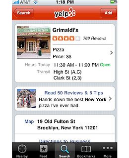 Yelp應(yīng)用能為iPhone用戶提供身邊餐館、酒吧等的評論。