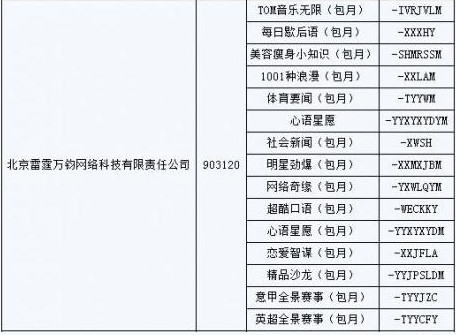 圖:北京雷霆萬均網(wǎng)絡(luò)科技有限責(zé)任公司被強制下線業(yè)務(wù)列表