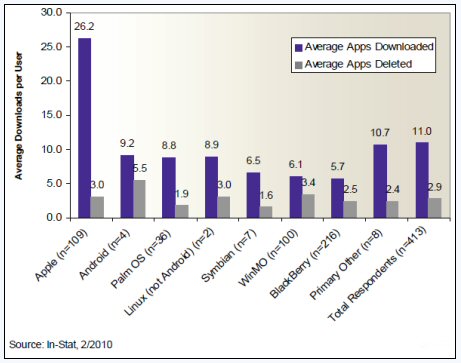 除了應(yīng)用程序下載之外,In-Stat也追蹤應(yīng)用程序的實(shí)際使用情況,發(fā)現(xiàn)用戶時(shí)常在下載某個(gè)程序但覺得不感興趣后,就把它刪除了,尤其是免費(fèi)的應(yīng)用程序。