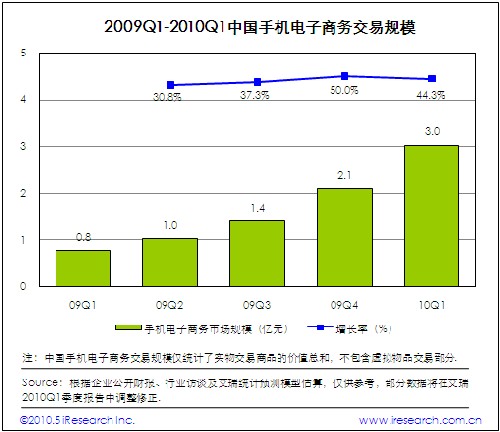根據(jù)艾瑞咨詢即將發(fā)布的2010年第一季度中國(guó)移動(dòng)互聯(lián)網(wǎng)市場(chǎng)數(shù)據(jù)顯示,2010Q1中國(guó)移動(dòng)互聯(lián)網(wǎng)市場(chǎng)整體交易規(guī)模達(dá)到44.9億,環(huán)比增長(zhǎng)5.2%。艾瑞咨詢分析認(rèn)為,盡管電信運(yùn)營(yíng)商計(jì)費(fèi)政策調(diào)整,對(duì)移動(dòng)增值市場(chǎng)收入產(chǎn)生負(fù)面影響,但是手機(jī)電子商務(wù)、手機(jī)搜索等業(yè)務(wù)領(lǐng)域的良好市場(chǎng)表現(xiàn),推動(dòng)移動(dòng)互聯(lián)網(wǎng)市場(chǎng)規(guī)模平穩(wěn)增長(zhǎng)。
