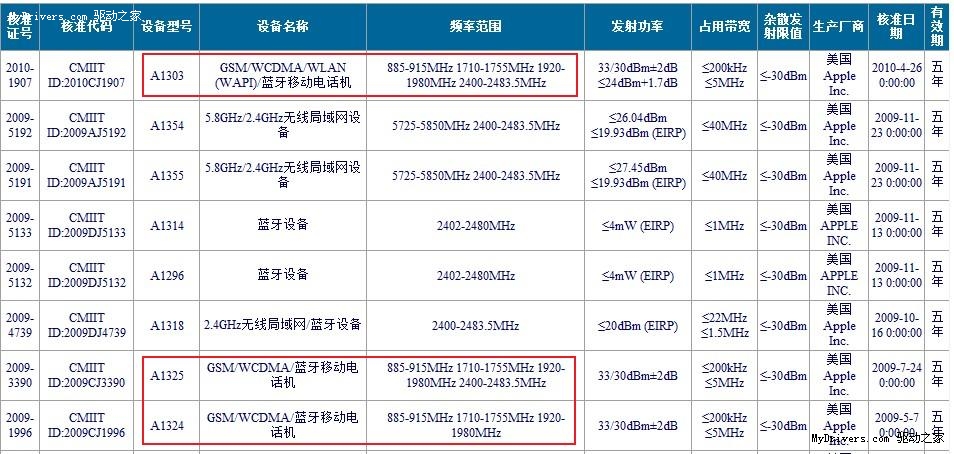 該機型號為A1303,明顯區(qū)別于目前在售的A1324(iPhone 3G)和A1325(iPhone 3GS)。而新機在設備名稱一欄中的信息更是值得關注,在原有“GSM/WCDMA/藍牙移動電話機”的基礎上,A1303加入了WLAN(WAPI)功能,如傳言所說一樣提供了對中國標準WAPI的支持,因而也終于迎來了WiFi的回歸。