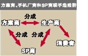 中國移動(dòng)2007年1月出臺(tái)的《移動(dòng)夢(mèng)網(wǎng)SP合作管理辦法》規(guī)定,禁止SP和終端廠家直接進(jìn)行終端內(nèi)置業(yè)務(wù)的合作。但是,大部分國產(chǎn)手機(jī)生產(chǎn)環(huán)節(jié)當(dāng)中,都有一個(gè)重要的角色,那就是手機(jī)方案商。方案商主要負(fù)責(zé)提供整套手機(jī)設(shè)計(jì)方案,包括研發(fā)手機(jī)主板、設(shè)計(jì)操作系統(tǒng),他們把帶有操作系統(tǒng)的主板賣給手機(jī)生產(chǎn)商,生產(chǎn)商再采購?fù)鈿、液晶屏等部件組裝成成品手機(jī)。