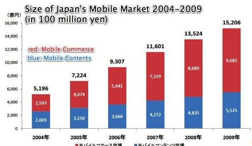 據(jù)國(guó)外媒體報(bào)道,日本總務(wù)省上周公布了一份移動(dòng)增值服務(wù)市場(chǎng)調(diào)查報(bào)告。報(bào)告顯示,包括移動(dòng)廣告在內(nèi),日本移動(dòng)增值服務(wù)市場(chǎng)份額去年增長(zhǎng)12%,至1.52萬億日元(折合173億美元)。