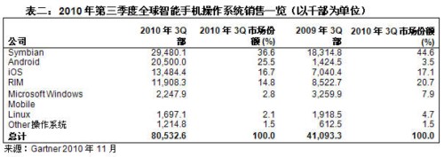 Gartner:2010年第三季度智能手機(jī)銷售增長96%