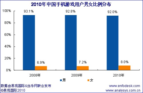 近期易觀國(guó)際、當(dāng)樂網(wǎng)聯(lián)合對(duì)手機(jī)游戲用戶進(jìn)行調(diào)研,推出《中國(guó)手機(jī)游戲用戶研究報(bào)告2010》,從中國(guó)手機(jī)游戲用戶結(jié)構(gòu)特征和用戶行為方面分析手機(jī)游戲產(chǎn)業(yè)發(fā)展三大空間: