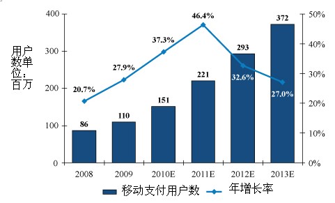 基于“中國計算機世界”的研究預測,中國移動支付用戶在2009年底達到1.1億,預計將在2013年超過3倍。由于需求大幅提高,電信運營商會繼續(xù)在每個省推出移動支付解決方案網(wǎng)絡(luò)。反過來,也會刺激第三方平臺和供應商的發(fā)展。