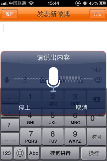 另外,在“發(fā)表新微博”輸入框底部,有明顯的語音輸入按鈕、位置定位等圖標(biāo),用戶點擊錄制微博,完畢后系統(tǒng)將會進(jìn)行識別計算,最后以文字形式呈現(xiàn)在輸入框中。據(jù)悉,此種方式采用了科大訊飛語音輸入技術(shù),但經(jīng)實際試用發(fā)現(xiàn),目前測試版本還還存在一定問題,對方言、同音字、語音速度、使用環(huán)境影響比較大,實際使用起來識別的效率并不高。