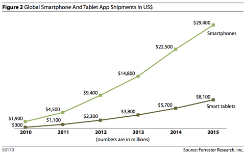 北京時(shí)間3月1日消息,據(jù)國(guó)外媒體報(bào)道,市場(chǎng)研究公司Forrester當(dāng)?shù)貢r(shí)間周一發(fā)表報(bào)告稱(chēng),到2015年,移動(dòng)應(yīng)用市場(chǎng)規(guī)模將達(dá)到380億美元。