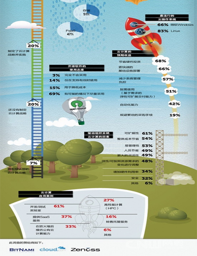 此項調查指出,在他們調查的所有云部署項目中,完全不使用開源軟件的云項目只有3%,而69%的云項目在可能的情況下均采用了開源軟件。