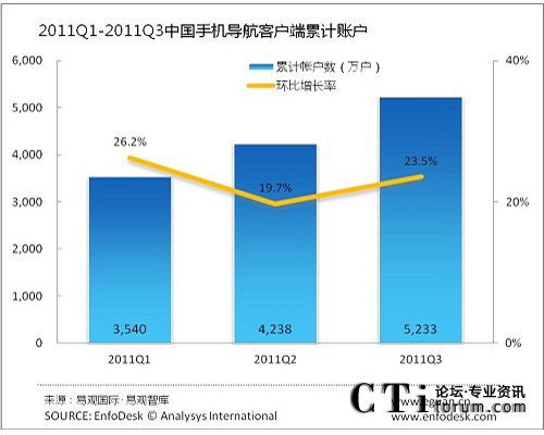 2011年3季度中國手機導(dǎo)航客戶端帳戶達5233萬