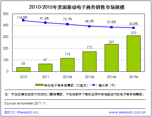 2015年美國(guó)移動(dòng)電子商務(wù)市場(chǎng)規(guī)模將達(dá)到310億美元