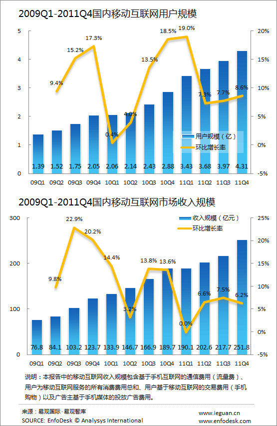 2011年國內移動互聯網用戶規(guī)模突破4億