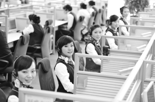 在山西,民間流傳著一句俚語:“出門放心記倆號(hào):110和10086!焙艚兄行哪壳耙寻l(fā)展為太原、侯馬兩個(gè)呼叫基地,共有2000多名員工!斑@里的工作是每周七天、每天24小時(shí)不間斷的,除了現(xiàn)金支付,我們這里可以辦理移動(dòng)公司的上千種業(yè)務(wù)。每位話務(wù)員一天平均要接通近300個(gè)電話,春節(jié)、國慶等假日更是繁忙。”