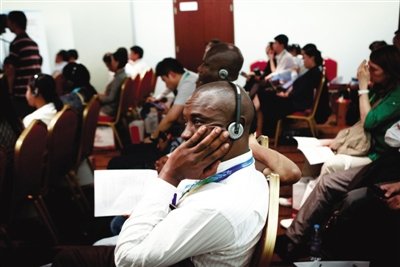 昨日,京交會上,“中國分銷服務(wù)業(yè)企業(yè)走出去”會場,一位外籍嘉賓在認(rèn)真聽同聲傳譯。新京報(bào)記者 孫純霞 攝