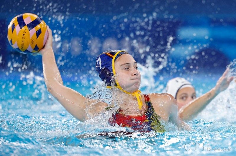 8月4日,西班牙隊(duì)球員埃萊娜(左)在比賽中。當(dāng)日,在巴黎奧運(yùn)會(huì)女子水球小組賽B組比賽中,西班牙隊(duì)13比11戰(zhàn)勝意大利隊(duì)。新華社記者 張玉薇 攝