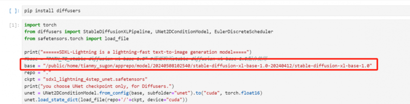 第三步,商城首頁中選擇 SDXL-Lighting 系列模型商品,免費(fèi)購(gòu)買后點(diǎn)擊“一鍵試用”。進(jìn)入notebook頁面后選擇“Python3.9”內(nèi)核,將第二步復(fù)制路徑粘貼到代碼的 base 變量中,點(diǎn)擊保存。