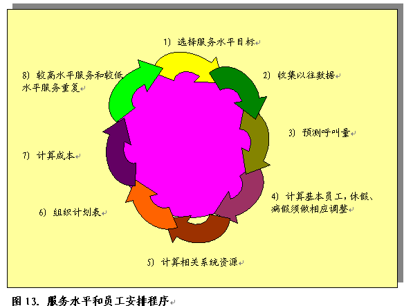 要準(zhǔn)確預(yù)測員工需求量,至少需要四個月的相關(guān)數(shù)據(jù)。這些數(shù)據(jù)將收錄在自動工作表制訂工具中。圖13舉例說明了呼叫中心可采取的此類步驟。