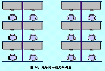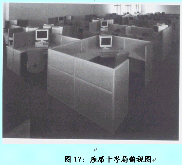 。。在此格局中,客服代表采用兩兩面面相對的方式進行辦公,但位于同一側的客服代表是相同面向的。