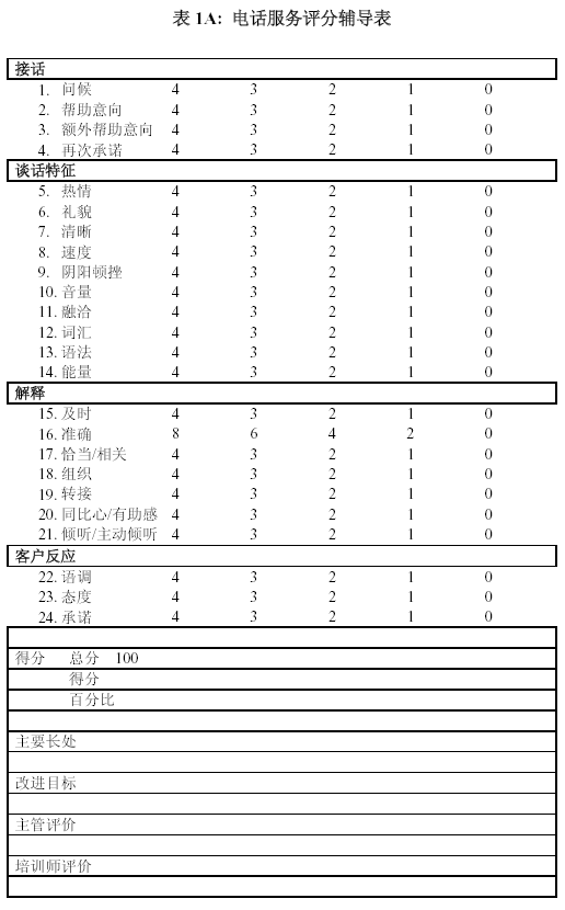 。。無論是客戶服務還是電話銷售, 輔導表所測定的內(nèi)容一定要和培訓內(nèi)容一致起來. 沒有培訓過的項目, 不要要求座席代表自行理解.