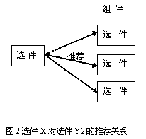 當客戶選擇某個選件時,系統(tǒng)自動提示推薦另一選件,這種關(guān)系稱為選件的推薦關(guān)系。比如,在配置手機產(chǎn)品時,選擇了某電話選件,則推薦使用特定充電器型號選件,雖然其他類似的選件也可以適用。如圖2所示,雖然選件X可以與組件Y內(nèi)的選件Y1,Y2,Y3搭配,但推薦使用Y2。