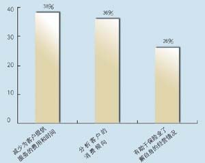 關(guān)于所應(yīng)用的CRM類型,有5家是呼叫中心,5家是分析型,7家是運營型,2家是屬于大型企業(yè)CRM。其中13家擁有動態(tài)客戶數(shù)據(jù)庫,占到68.4%。這其中又有42%利用數(shù)據(jù)庫作客戶記錄,26.3%作為客戶支持使用,15.7%用作統(tǒng)計分析,另有16%作為市場推廣。保險公司與客戶聯(lián)系的方式,從重要性來看依次為:面對面\電話\網(wǎng)絡(luò)\傳真,這說明保險公司對于與客戶進行人性化交流的重視。在問到CRM的主要作用時,有5家表示使用CRM有助于保險業(yè)了解自身的經(jīng)營情況,幫助公司準確地發(fā)現(xiàn)贏利客戶和具有贏利潛力的客戶,有7家認為使用CRM有助于分析客戶的消費傾向,有7家認為使用CRM有助于優(yōu)化信息和資源管理。在問到是否愿意為像CRM系統(tǒng)這樣的咨詢或服務(wù)付費時,有11家表示愿意,占到57.8%。