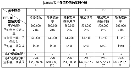 顯然,流失率是影響NPV的最重要因素,良好的客戶關(guān)系或客戶保留將創(chuàng)造更大的利潤。從短期和長期來說,"以客戶保留為中心"是回報最豐厚的CRM活動。