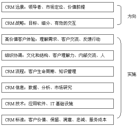 對于大多數(shù)公司而言,一個產品戰(zhàn)略很好理解。但是CRM戰(zhàn)略卻不太讓人理解。這是因為在CRM產業(yè)界、學術界對"CRM是什么"、"CRM戰(zhàn)略由什么組成"還沒有達成共識。因此,以下所闡述的CRM戰(zhàn)略并不一定勝人一籌,但我們會努力全面論述CRM戰(zhàn)略框架。我們認為一個CRM戰(zhàn)略必須包括以下幾個內容:定義價值前提、定義客戶戰(zhàn)略、企業(yè)變革計劃。