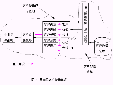 brains behind CRM)。二、圍繞客戶智能的實現(xiàn)的研究。Jim Berkowitz提出"商業(yè)智能是CRM的基礎(chǔ)"的觀點。另一個難得可貴的地方是該研究對商業(yè)智能包括的組件進行了分析,將OLAP、數(shù)據(jù)倉庫、數(shù)據(jù)挖掘技術(shù)作為商業(yè)智能的必備組件。三、與客戶智能密切相關(guān)的研究。Emma