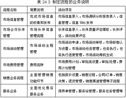 根據(jù)CRM軟件的總體目標(biāo),項(xiàng)目組詳細(xì)審核每個(gè)業(yè)務(wù)的流程,并按照流程對(duì)軟件進(jìn)行定制。所制定的流程包括三大業(yè)務(wù)領(lǐng)域的業(yè)務(wù),見(jiàn)表24.3。