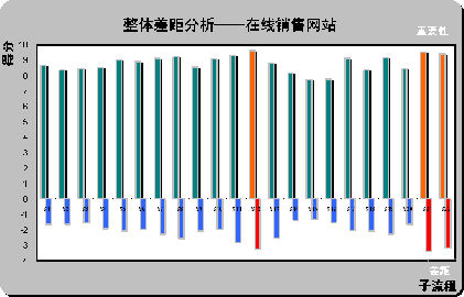 而差距最小的子流程分別為S15,S16和S14,雖然這三個(gè)子流程并未成為最重要的子流程,但用戶在這三個(gè)子流程個(gè)性化頁面設(shè)置、個(gè)人定制促銷信息的發(fā)布和個(gè)人購買歷史回顧上獲得了非凡的體驗(yàn)。